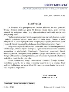 Kielce, dnia 22 kwietnia 2026 r. KOMUNIKAT W bieżącym roku przeżywamy w Kościele jubileusz 200-lecia powstania Żywego Różańca założonego przez bł. Paulinę Jaricot, dzieła, które prowadzi wiernych do pogłębienia wiary