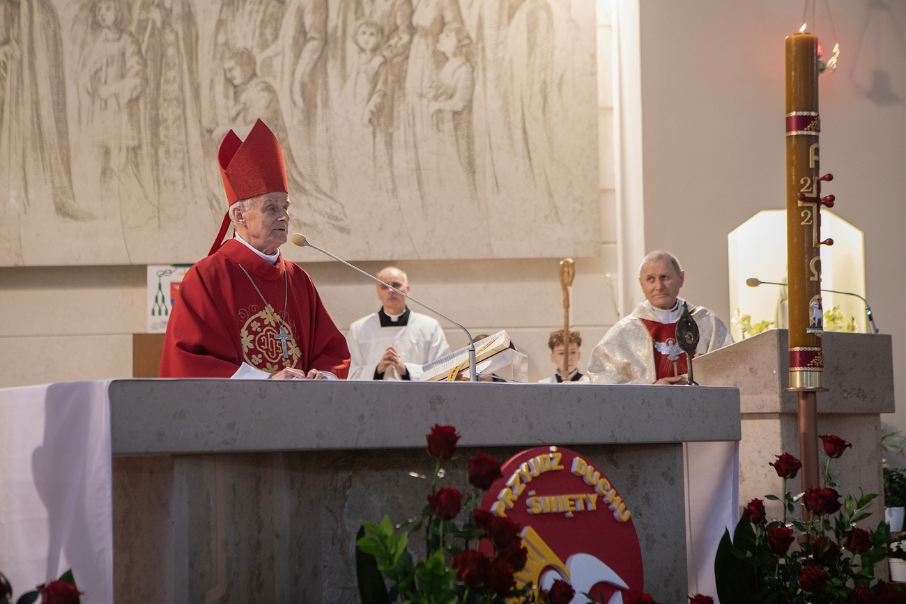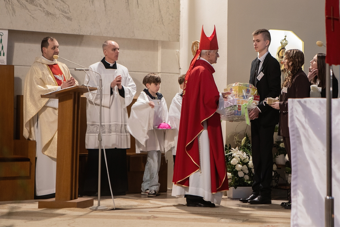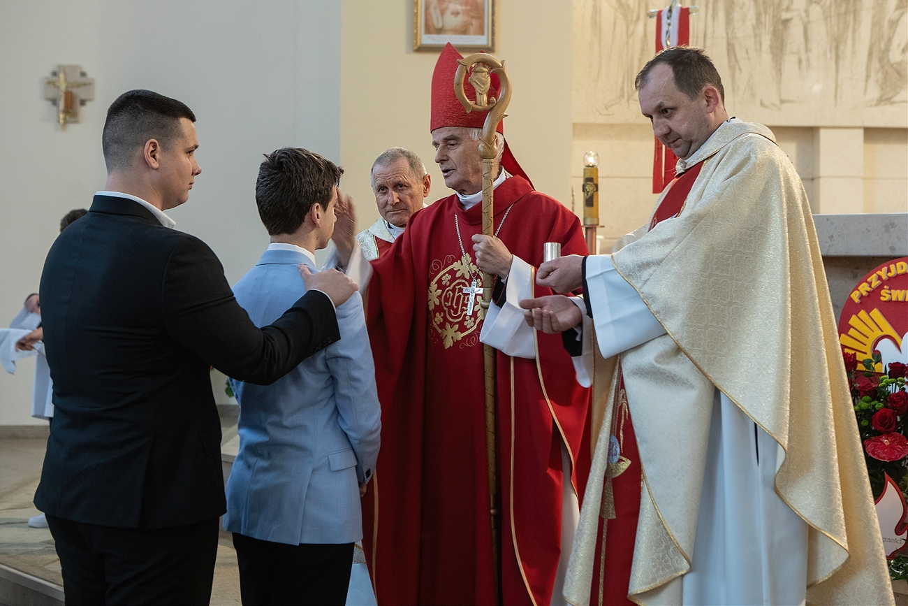 Podczas homilii Ksiądz Biskup zwrócił uwagę na potrzebę odwagi w wyznawaniu wiary we współczesnym świecie oraz na znaczenie żywej relacji z Chrystusem. Zachęcał młodych, aby nie wstydzili się swojej wiary, lecz byli jej świadkami w codziennym życiu – w rodzinie, szkole i wśród rówieśników.