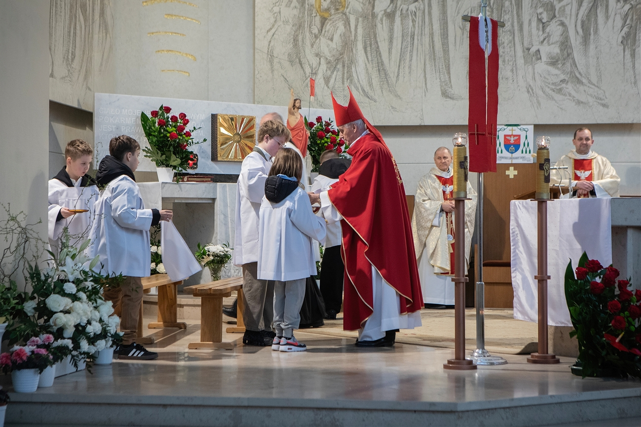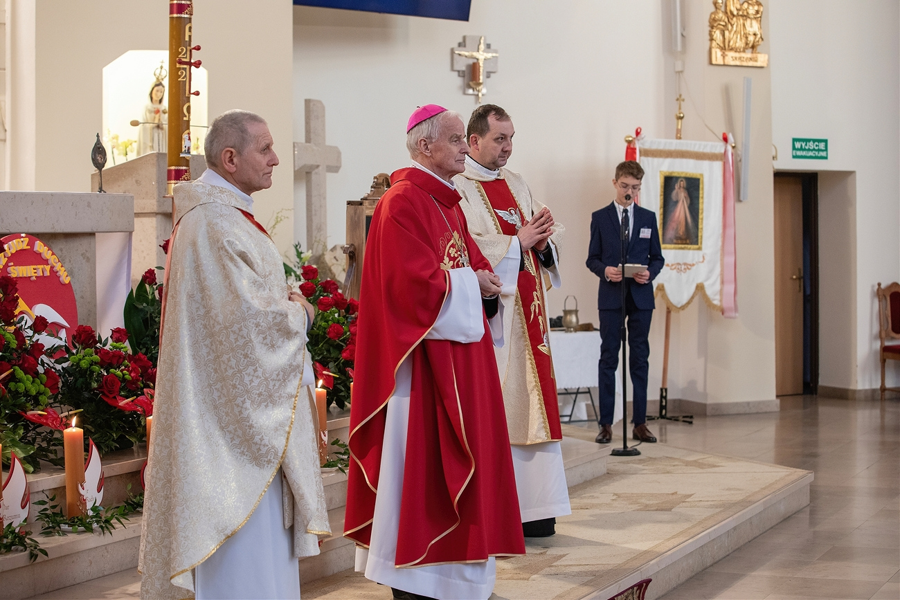 W sobotę, 11 kwietnia, nasza parafia pw. Miłosierdzia Bożego przeżywała wyjątkową uroczystość – Mszę Świętą z udzieleniem sakramentu bierzmowania młodzieży, której przewodniczył Ksiądz Biskup Marian Florczyk. Był to dzień szczególny nie tylko dla kandydatów do bierzmowania, ale dla całej wspólnoty parafialnej, która modlitwą i obecnością towarzyszyła młodym w tym ważnym momencie ich życia wiary.